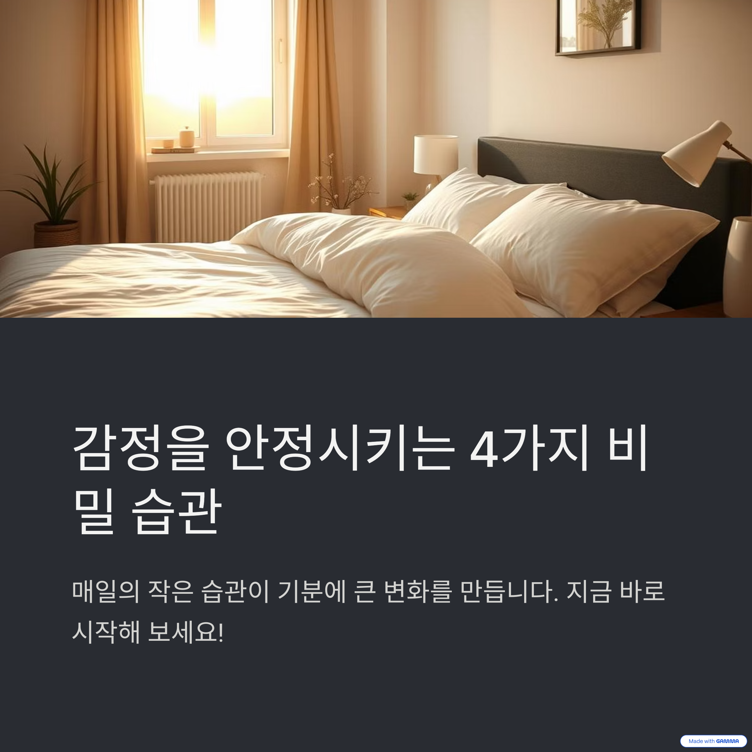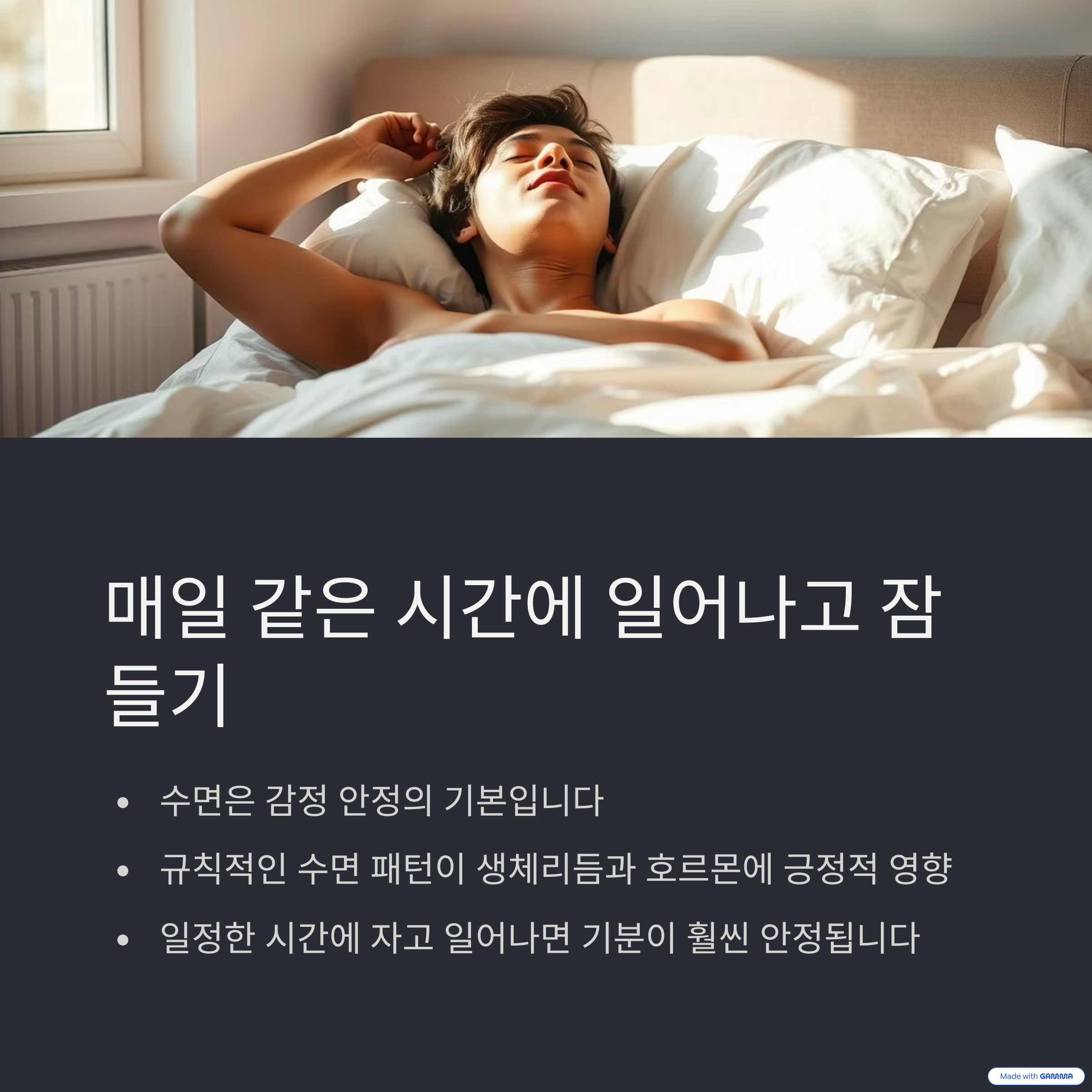 | 실천 포인트 | 아침 식사, 수면 루틴, 햇빛 노출부터 시작하세요. |